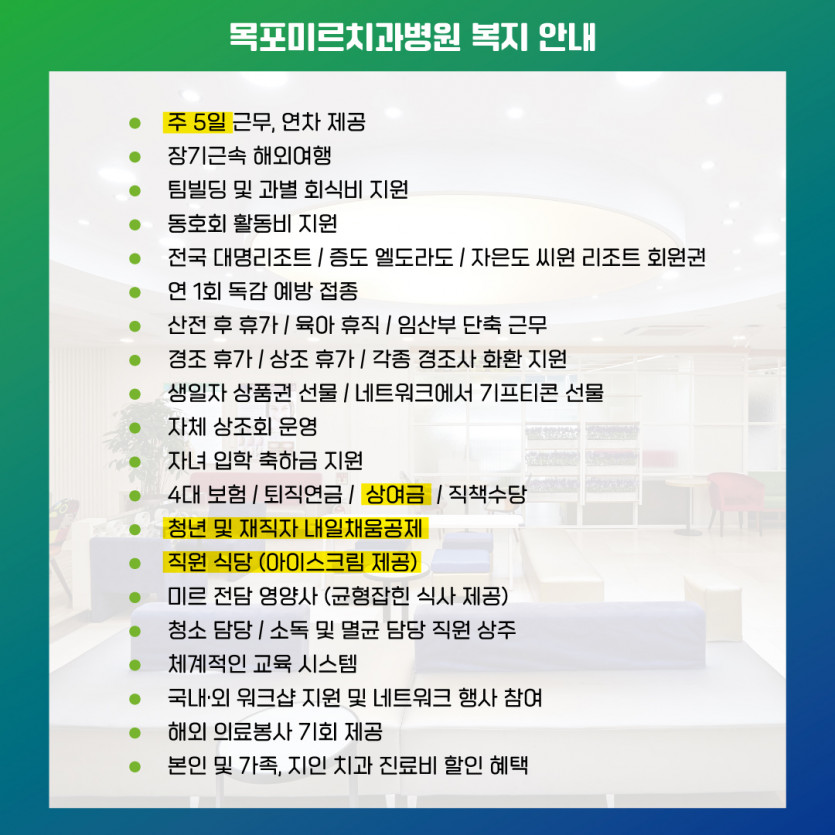 목포미르치과병원은 병원에 내원하시는 분들의 편의와
