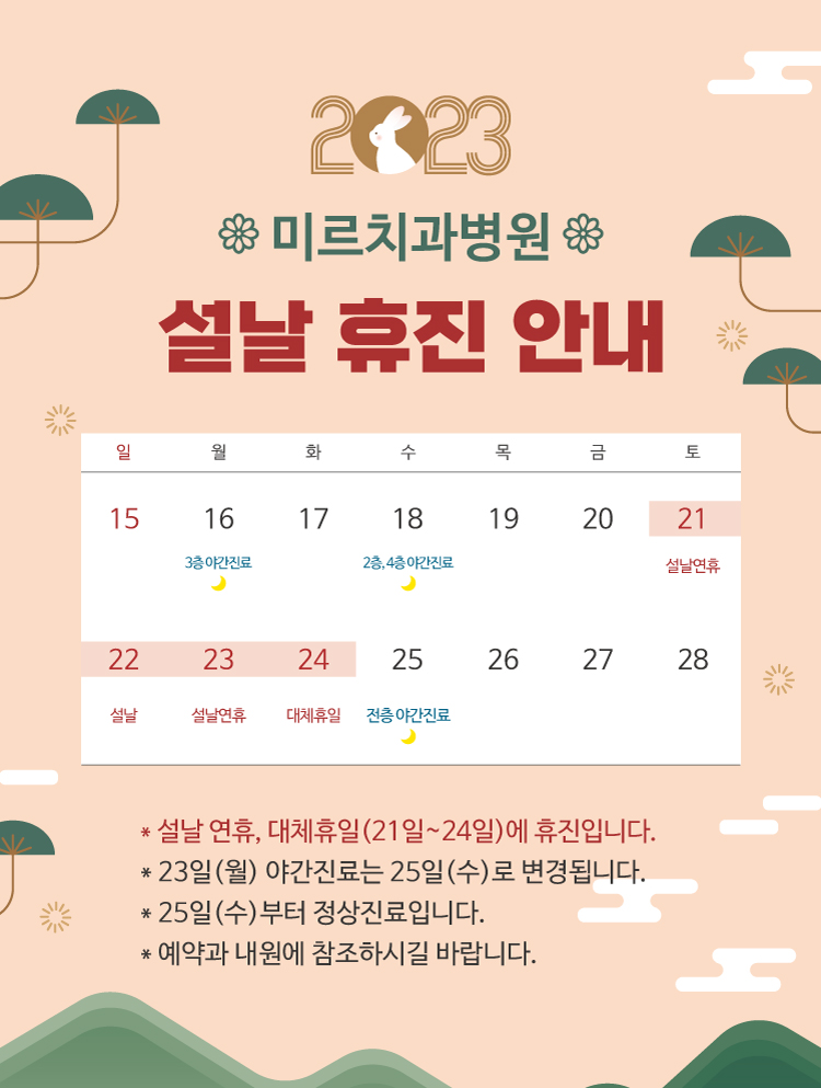 2023년 설날 및 대체공휴일 휴진 안내