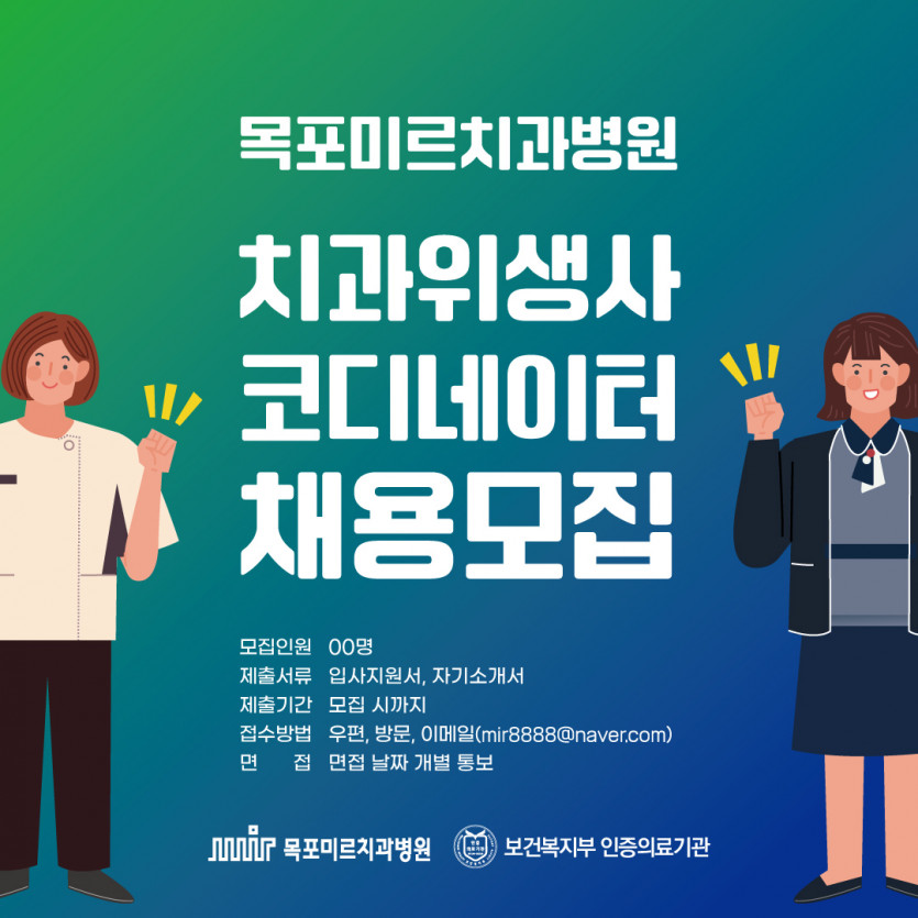 2022년 치과위생사, 코디네이터 채용모집 안내 (코디네이터 모집 마감, 치과위생사 모집 중)