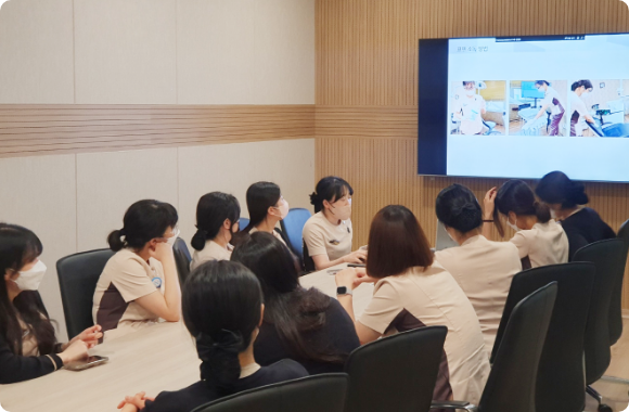 감염관리, 안전교육, 시설, 의료 정보 등을 정기적으로 교육하고 있습니다.